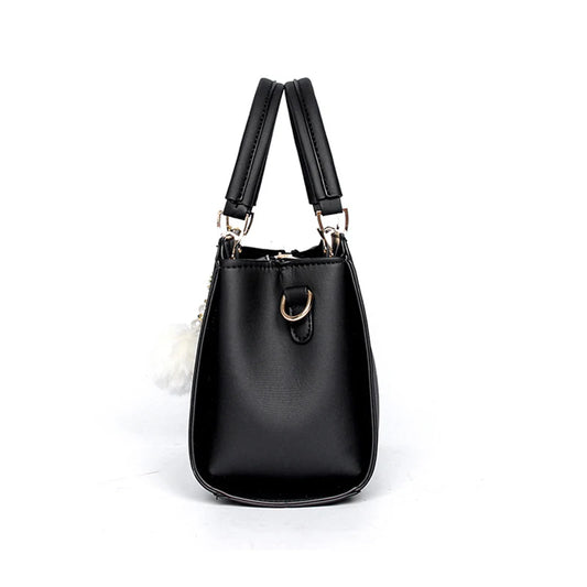 Casual Tote Bag with Pom Pom - Crossbody Shoulder Handbag