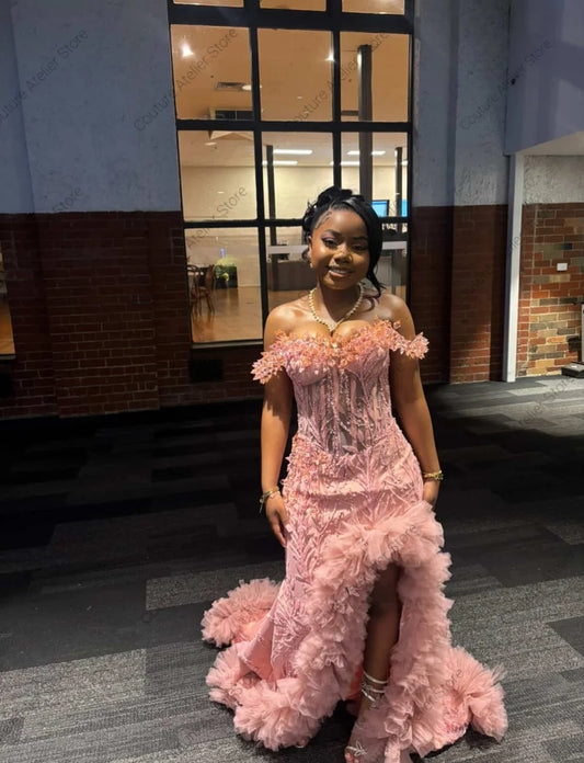 Bespoke Mermaid Prom Gown - Off-Shoulder Floor-Length Formal Dress | Custom Sizing